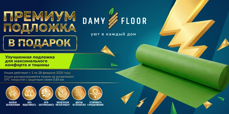 Укладка Усовершенствованный кварцевый SPC ламинат DAMY FLOOR Арарат в одном из салонов ДАРПОЛ